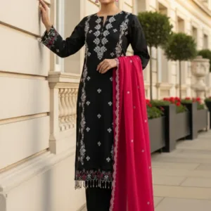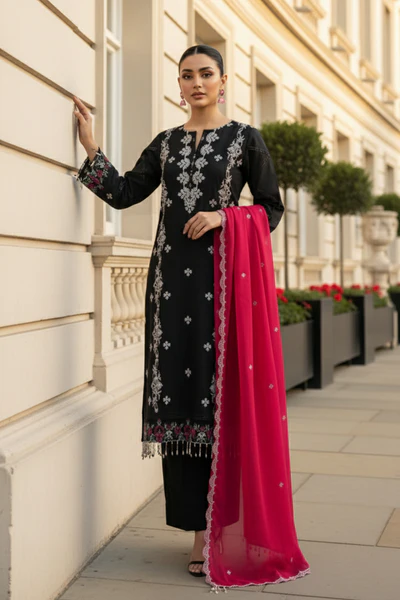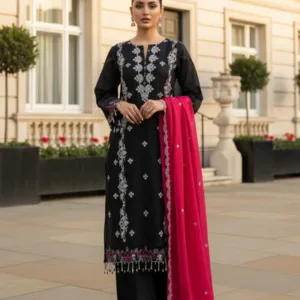 Timeless elegance, perfected with intricate precision. This collection we celebrate tradition with a contemporary edge. This 3 – Piece article includes a dyed embroidered Cotton suit design, ideal for occasional wear.