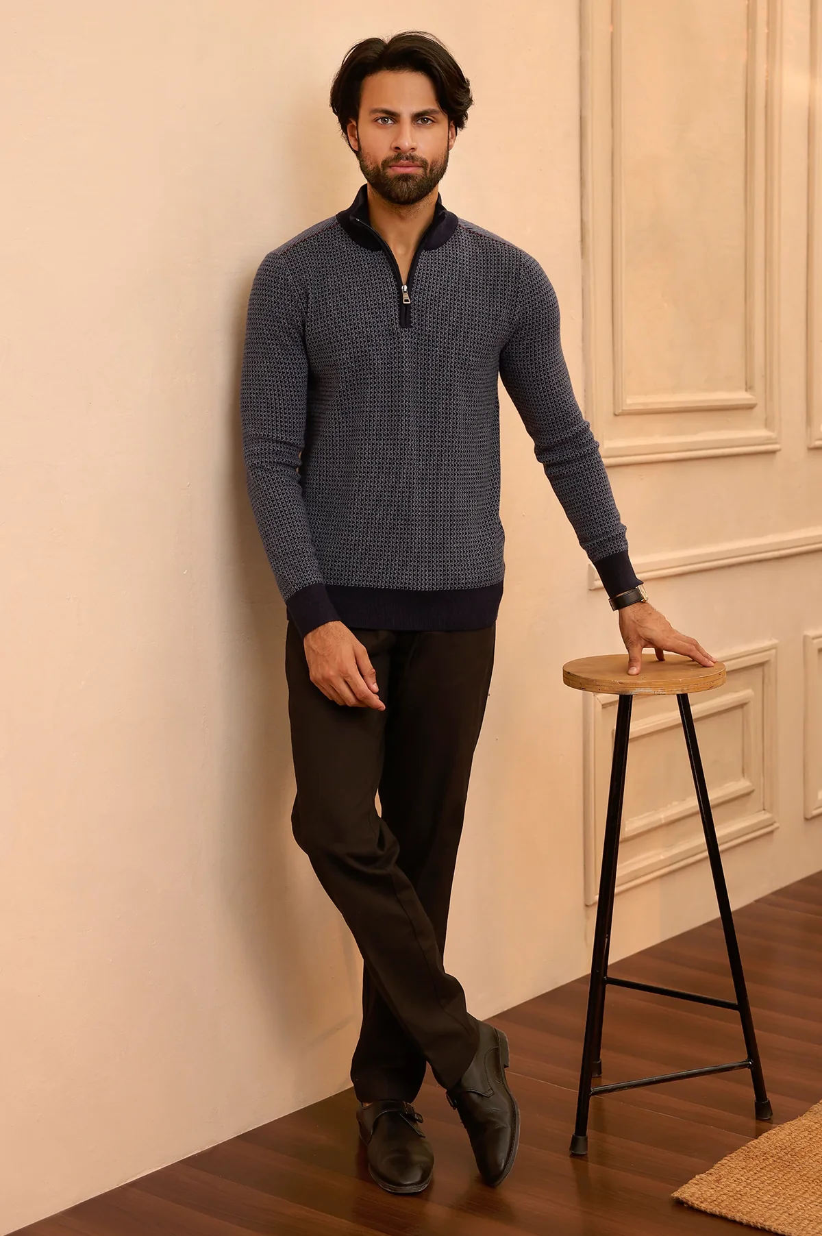 Stay stylish and comfortable with this versatile full-sleeve zip-up sweater, perfect for adding a touch of sophistication to your casual and semi-formal outfits. With its unique texture and sleek zip collar, this sweater is designed for those who value both fashion and functionality.