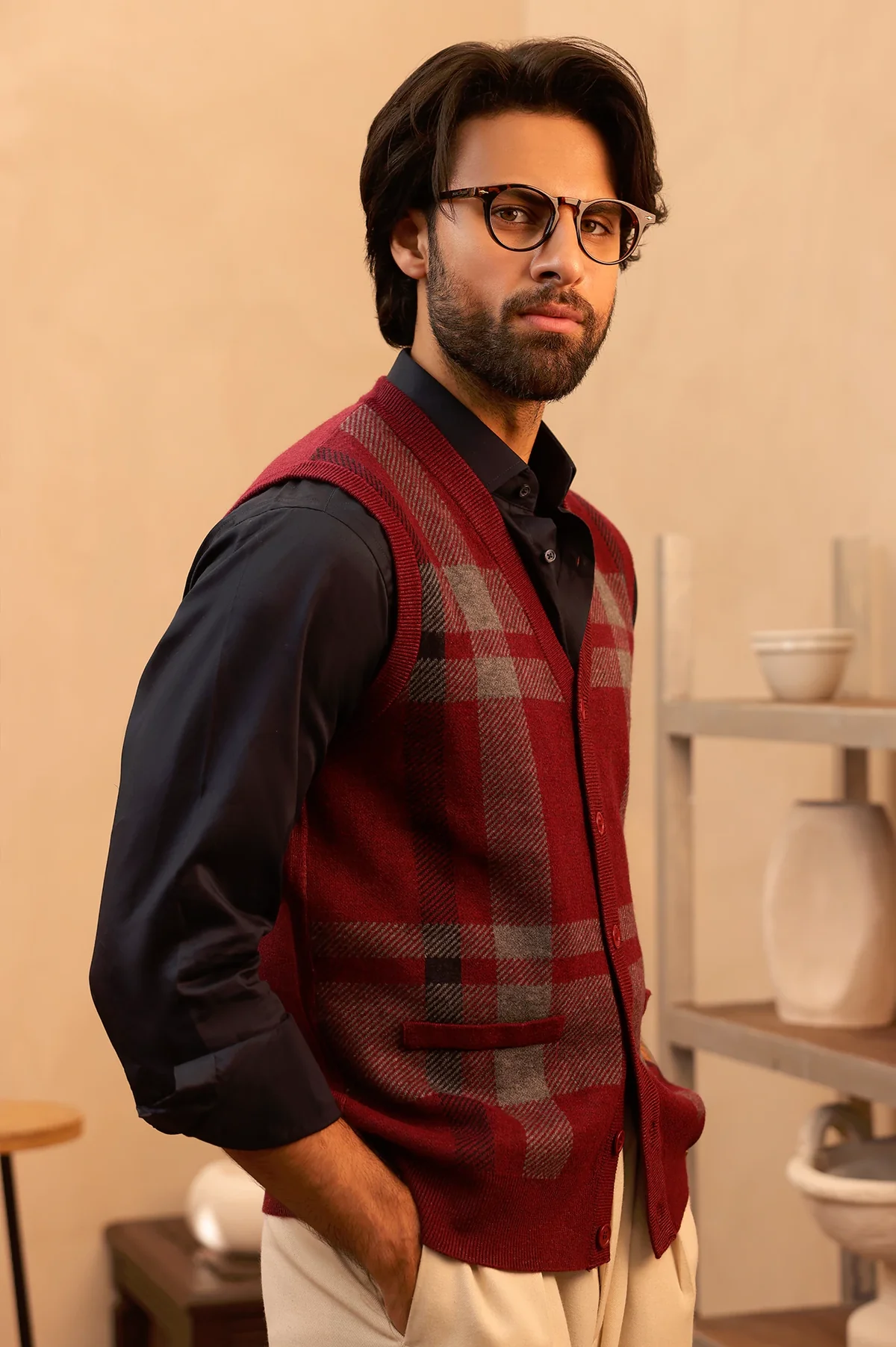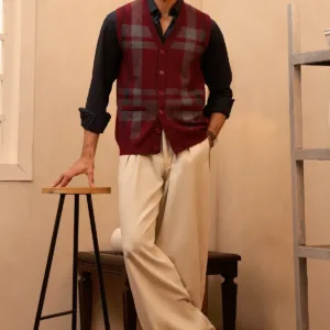 Be the first to review “Men Maroon Sleeveless Cardigan”