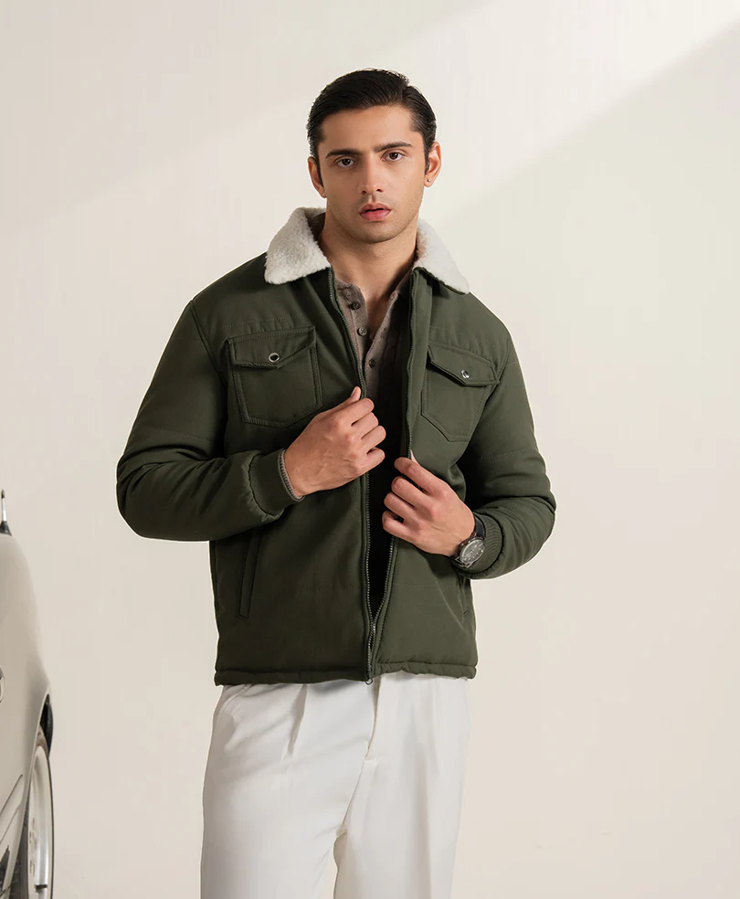 The Olive Cloudline Quilted Jacket combines utility and sophistication in equal measure. Crafted in a sleek olive tone, it features a soft quilted body with a plush sherpa collar for a refined yet relaxed finish. The structured silhouette and chest flap pockets lend it a clean, modern edge — making it an effortless outerwear choice for transitional weather and crisp evenings.